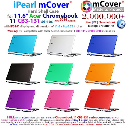iPearl mCover Hard Shell Case for new 2016 11.6" Acer Chromebook 11 CB3-131 series with IPS HD display ( NOT compatible with older Acer CB3-111 series ) Laptop (Blue)
