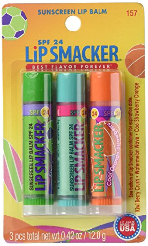 -. Binding : Health and Beauty -. Brand : Bonne Bell -. Color : Assorted -. EAN : 0350051501576 -. Feature : Best Flavor Forever * Sunscreen Lip Balm / SPF 24 Lip Smacker / * Kiwi Berry Crush * Watermelon Wave * Cool Strawberry Orange / Moisturize and protect your lips from the sun, wind and cold with these delicious, soothing lip balms / Keep your lips soothed and healthy looking all year long -. Label : The Bonne Bell Company -. Manufacturer : The Bonne Bell Company -. Model : 157 -. MPN : 50157 -. PackageQuantity : 1 -. PartNumber : 50157 -. ProductGroup : Health and Beauty -. ProductTypeName : HEALTH_PERSONAL_CARE -. Publisher : The Bonne Bell Company -. Studio : The Bonne Bell Company -. Title : Bonne Bell Lip Smacker Trio, SPF 24, (157) -. UPC : 350051501576