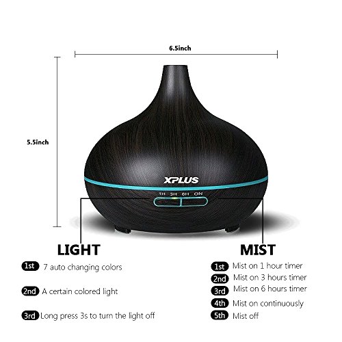 Studio : XPLUS Publisher : XPLUS Binding : Kitchen Product Description XPLUS 300ml Aroma Essential Oil Diffuser Aromatherapy Ultrasonic Cool Mist Humidifier with Color LED Lights Changing