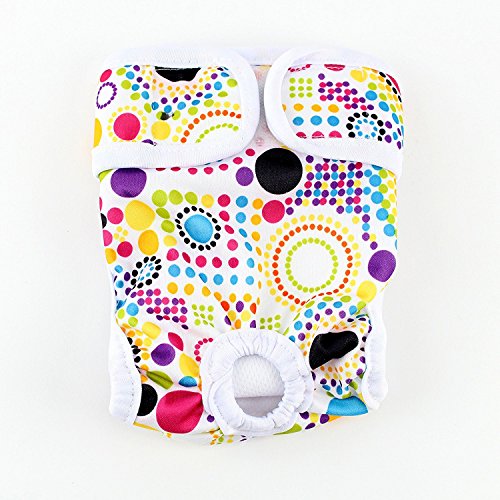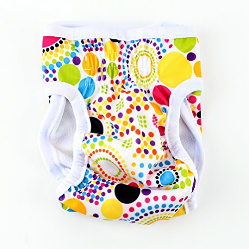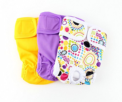 Studio : Midlee Publisher : Midlee Binding : Misc. Product Description Small dog diapers fit dogs with a 10-12.5" waist and a velcro closure keeps them securely in place. Comes in a pack of three diapers with one each of purple, yellow, and a multicolored circle print. A budget friendly alternative to disposible or low abosorbency dog diapers, these are machine washable and reusable. Similar to human cloth diapers, these are very absorbent and high-quality, requiring no extra layers or padding unlike some dog underwear alternatives. Dog diapers are great for dogs that are aging, in heat, have incontinence, are potty training, or who pee when excited. 0