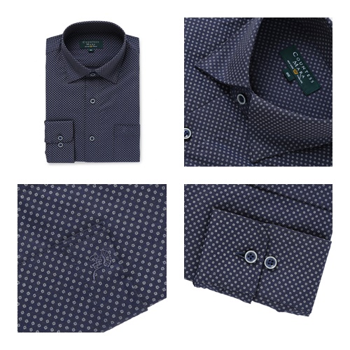 상품설명:은은한 도트프린팅 딥블루 슬림셔츠