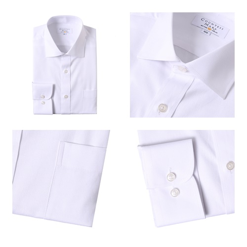 상품설명:바스켓 도비 패턴의 화이트 슬림긴팔셔츠