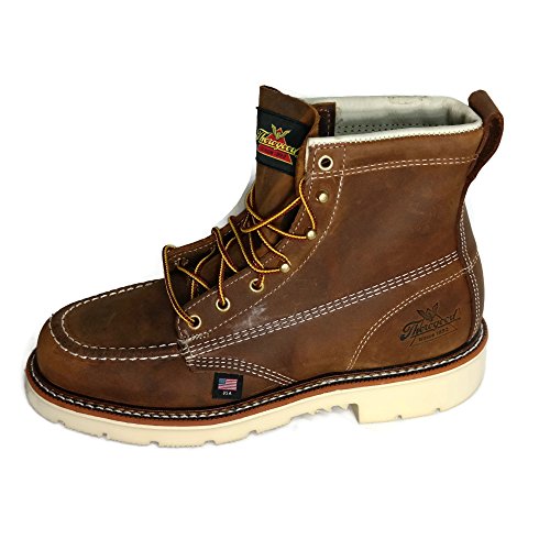 Studio : Thorogood Publisher : Thorogood Binding : Apparel Product Description Mens Thorogood Work Boots: This 6 inch classic men's lace work boot from the American Heritage Collection have a non safety moc toe and are made with goodyear welt. They are made in the USA and feature EH Protection, Slip Resisting, Single Density, leather, and Lug Outsole. 814-4375 0