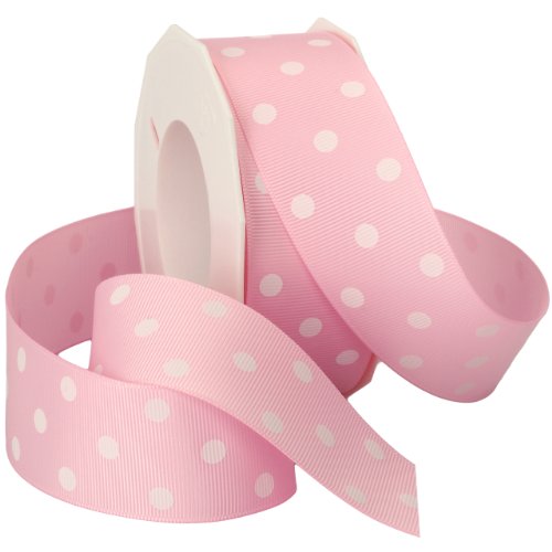 Morex Grosgrain Dot Ribbon, 1-1/2-Inch by 20-Yard Spool, Light Pink with White Dots