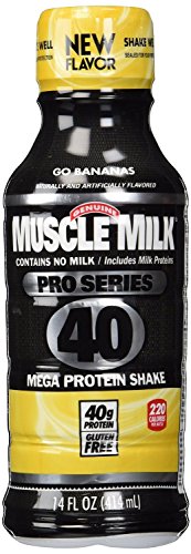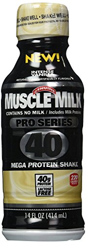 -. Feature : 3 - Knockout Chocolate, 3 - Intense Vanilla, 3 - Crushing Cookies N Creme, 3 - Go Bananas. / Contains no milk/ includes milk protein. / Mega protein shake. * 40g protein, * lactose free, * gluten free, * 220 calories per bottle. / Muscle Milk Pro Series 40 gives you forty grams of protein to help you recover and build strength. / Because we know you want to push your limits. It isn't for some people. It's for you. * Muscle milk. * Workout recovery fuel. * Give me strength.