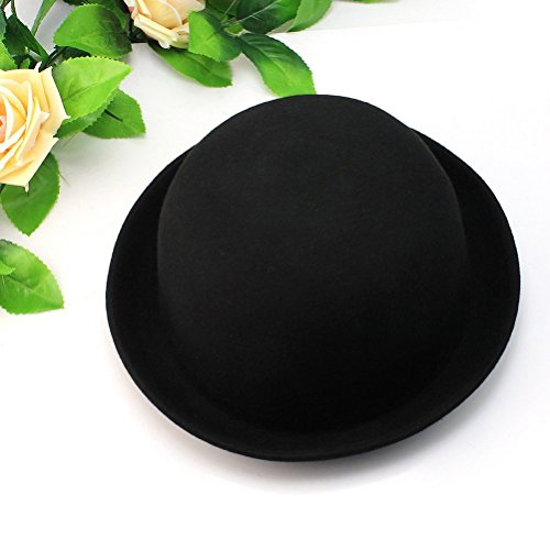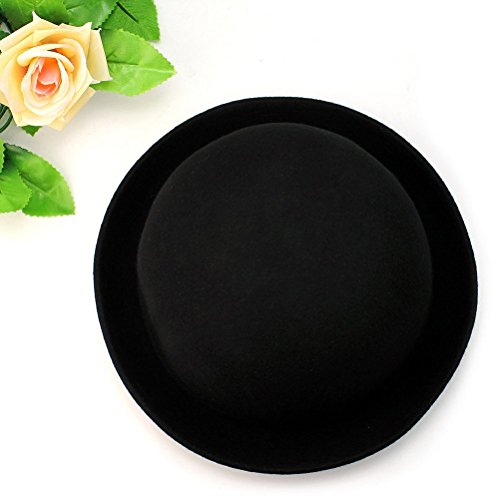 Package Including 1 * Women's Girls Roll-up Brim Wool Dome Hat Bowler (Black) 0