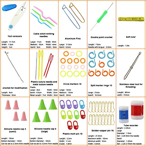 Kbnian Knitting Accessories Kit ,Crochet Tools Supplies with Case,Knitting Needles Sewing Tools,Basic Knitting Kits