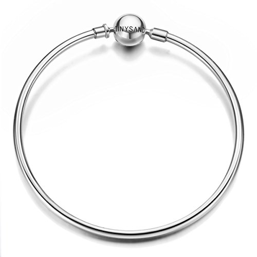 -. Title : TINYSAND 925 Sterling Silver Basic Chain Bangle Bracelet with Silver Snap Clasp Fits European & U.S. Charm Bead