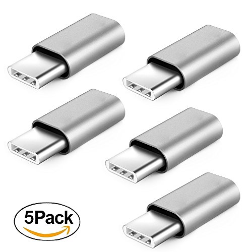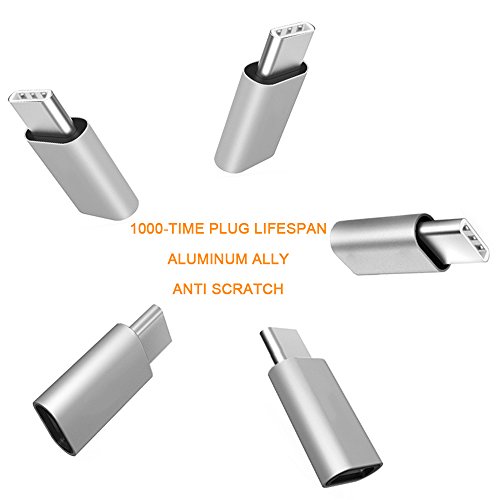 JUNLEI USB C Adapters [5-Pack],USB Type C to Micro USB Adapters for MacBook,Samsung Galaxy S8/S8 Plus/Note 8, LG G5/G6/V20, Nexus 5X/6P and more(Silver)