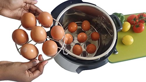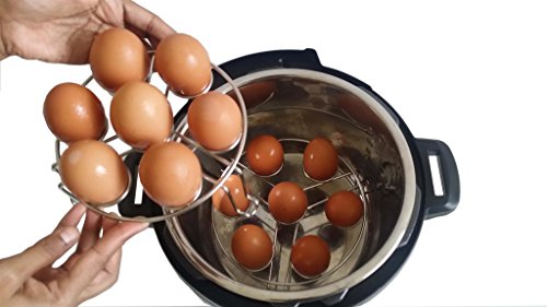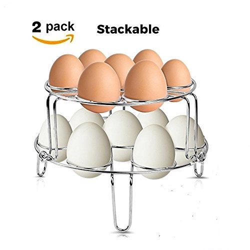STACKABLE DESIGN: Stacks one over the other beautifully, the upper rack has grooved legs to stand on top of the bottom rack. Can boil up to 14 eggs at the same time maximizing the usage space in your instant pot. Great for cooking eggs. Cooking the eggs with steam retains more vitamins, flavors, nutrients, and texture