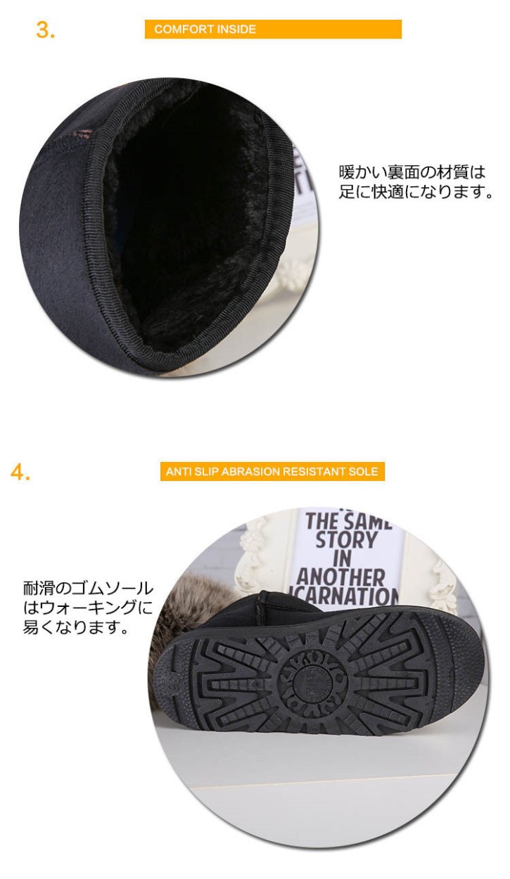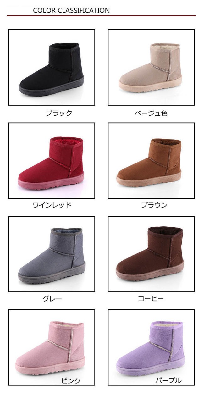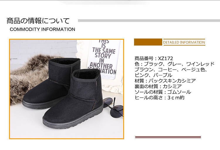 商品番号:XZ172色:ブラック、グレー、ワインレッドブラウン、コーヒー、ベージュ色、ピンク、パープル材質:バックスキンカシミア裏面の材質:カシミアソールの材質:ゴムソールヒールの高さ:3cm約注意:サイズについて、0.5cmの誤差があります。予めご了承してください。商品内容:1x靴サイズ:34:22cm 35:22.5cm 36:23cm 37:23.5cm 38:24cm 39:24.5cm 40:25cmムートンブーツレディース スノーブーツ 女性のショート 冬靴 防寒 暖かいシューズ 秋冬物 シンプル くつレディース用のムートンブーツが登場スノーブーツなので、冬に暖かいです。カラーもシルエットもとても組み合わせしやすくて、どんな場合にも使える上品な一足