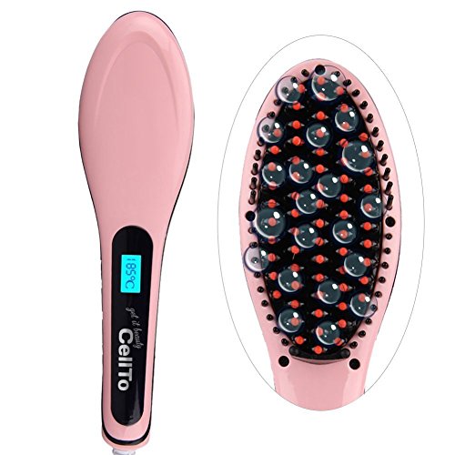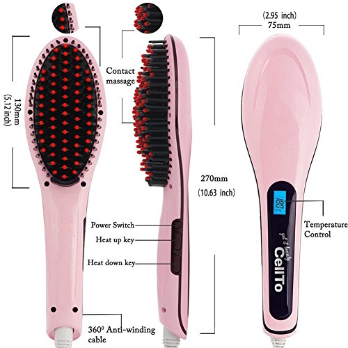 Feature : STRAIGHTENS IN MINUTES: The hair steamer straightener heats up fast and evenly so you can brush out tangles and turn fine, thick, short, long, silky, frizzy, wavy, or thinning hair into renewed straight hair in just minutes with hair care. Just brush, straighten, and go! / STIMULATES HEALTHIER HAIR: Using the power of anion technology to make straight hair and replenish, rejuvenate, strengthen your hair by reducing frizz and static electricity buildup. Anti scald with heat protection, detangling brush for natural cool hair style. / MULTIPURPOSE FUNCTIONALITY: Boost control with our Cellto Complete Hair Care Technology. We've merged a ceramic plate straightener flat iron, hair detangler brush, and anion hair massager together to give your head the benefits of all three in one versatile and portable mini hair brush. / FLEXIBLE TEMPERATURES: The Cellto Digital LCD Display features adjustable heat temperatures to match your specific hair type or style. You don't have to worry about leaving it on by accident because we've included an auto shut-off function because there's nothing worse than having to turn around to check! The Cellto straightening iron comes with dual voltage compatability (220V and 110V) perfect for travel use. / SUPERIOR GUARANTEE: Each of our Cellto Hair Straightening Brushes comes with a 30-day money back guarantee. Simply return it within 30 days of receipt for a full refund.