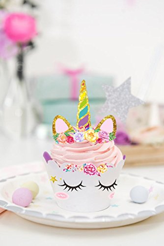 Unicorn Cupcake Toppers and Wrappers Double Sided Kids Party Cake Decorations Set of 24