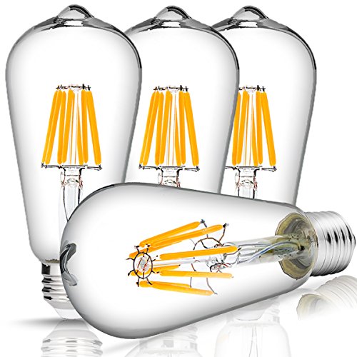 DORESshop LED Filament Bulb Dimmable, 75Watt Equivalent (8W) Light Bulbs, 2700K Warm White, 800lm, 330 Degree Beam Angle, ST64 Antique Shape, E26 Medium Base Light Bulbs for Home Lighting, 4Pack