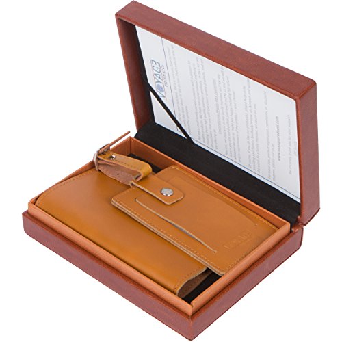 Product Description Why do I need this cover or box?Passport is the most important document. A passport without cover can easily get damaged. This cover protects it. It has a flap inside which can hold 3 credit cards and a boarding pass. The box serves dual purpose. As a gift and a storage box What material is used The Passport cover and the Luggage tag both are made of 100% Genuine Premium quality leather and we mean it. We looked for the best quality material. There are many cheap products available, but we used premium quality authentic material. Besides protection, this set gives luxurious, elegant look to your personality. We always go beyond your expectations. We have added a leather luggage tag (has address cover for a ) The box is made of strong cardboard material and covered with high quality PU leather for extra strength. What is the size of each item? 1. Passport Cover size: 5.7" (H) x 3.9" (W) 2. Luggage tag size: 3"(W) x 4.5" (H) 3. Gift/Storage box (outside) 7" (W) x 5.3" (L) x 2" (H) Is there any warranty? We understand. We have our family too, and we do want the peace of mind when buying online. At 'BuyWorryFree', we treat our customers as our family members. Our mission is very simple - we want to offer the best quality products with 100% satisfaction guarantee, We want to standby our name- BuyWorryFree! So go ahead and buy one set, either for you or for a loved one as a gift - there is nothing to worry about! Thank you in advance for your support 0