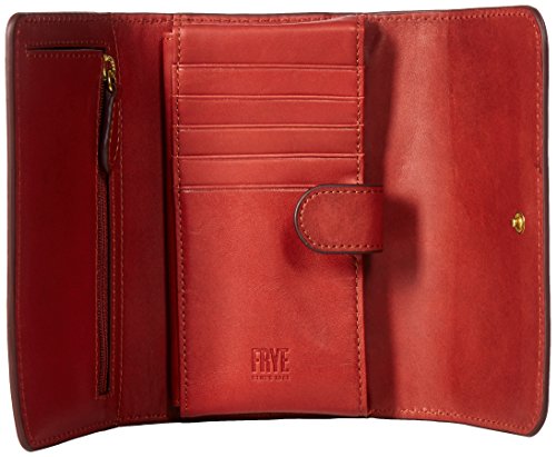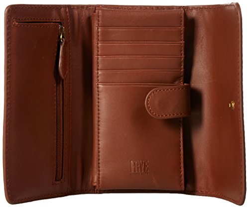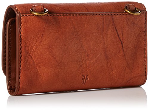 Studio : FRYE Publisher : FRYE Binding : Apparel Product Description Founded in 1863, Frye is committed to creating iconic leather goods, using the best materials, craftsmanship and design. This phone wallet cross body clutch is made with American chrome tanned leather that creates a tie-dye affect throughout, no 2 wallets will look the same. Details: snap closure, 5 card slots, 1 zip change compartment, 1 phone pocket, stitching details on body, removable cross body strap, rivet hardware, leather lined. Measurements: 6'W X 3.5'H X .75'D 0