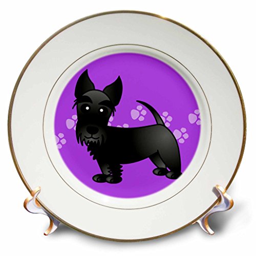 3dRose cp_40869_1 Cute Black Scottie Cartoon Dog Purple with Pawprints Porcelain Plate, 8-Inch