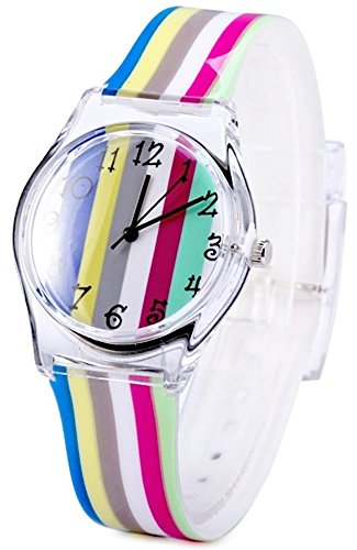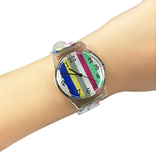 ✿ DESIGN: Colorful stripes design, like a very happy young and colorful time. This watch is ideal for young girls to wear.