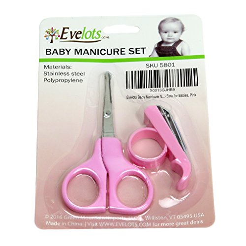 Evelots® Baby Manicure Nail Clipper and Scissor Set - Safe for Babies, Pink