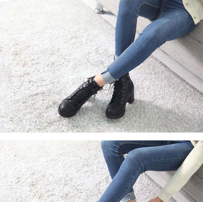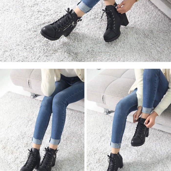 商品名:ショートブーツ レディース チャンキーヒール 太ヒール レースアップ 2017 秋冬 ファッション 靴 婦人靴