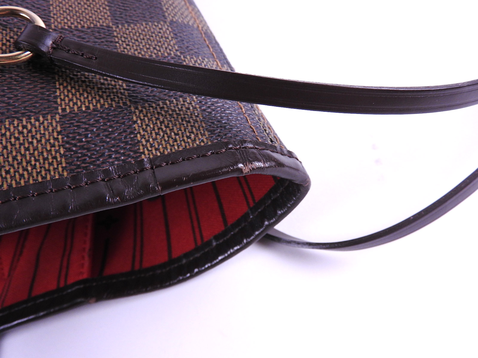 Damier canvas: Barely used feeling. Good condition. Leather: Slightly used feeling. Small wrinkles in the trim around the top of the bag. |