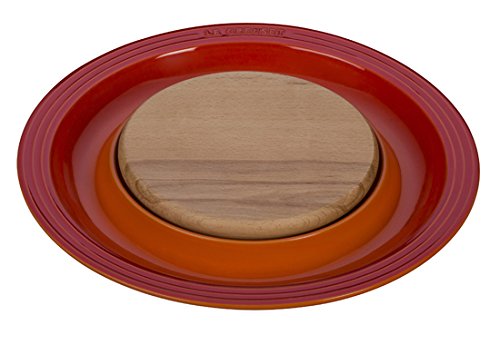 Le Creuset of America Stoneware Round Platter with Cutting Board, Flame