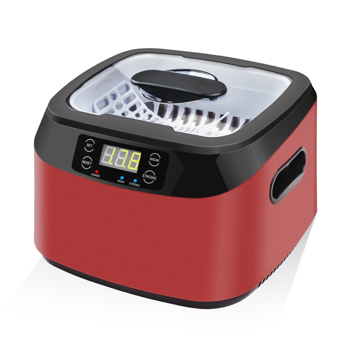水と洗浄物を洗浄槽に入れます。洗浄物の種類に応じて、付属のアタッチメントを使用してください。洗浄時間を設定し、スタートボタンを押します。タイマーが切れると洗浄終了です。 軽量なので持ち運びもラクラク、日常使いに便利なように、使いやすさにも配慮しました。 便利な15段階タイマー機能付き(5段階:90S,180S,280S,380S,480S) 汚れの程度に応じて洗浄時間の設定が可能です。液晶部には残り時間が秒単位で表示されま。操作パネルは押しやすい上面配置ボタン。水がはねても大丈夫なので、洗面所などでお使い頂けます。