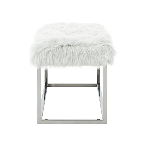-. Title : Inspired Home Monet Faux Fur Chrome Metal Frame Ottoman Bench, White