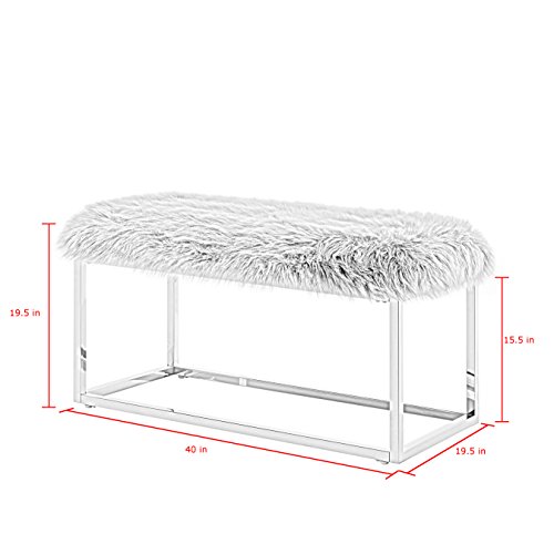 -. Feature : MODERN DESIGN - Give your home a touch of luxury with super soft and soothing faux fur bench / MULTI-FUNCTIONAL - Can be used in multiple room settings: as an ottoman, bench, vanity chair, dressing chair / VERSATILE USE - Bench provides extra seating with an elegant look that can fit into any room: bedroom, living room, dining room, entryway, also blends with a variety of decor / COMFORT - Great height for sitting and resting your feet or legs / EXCELLENT FOR SMALL SPACES - 40"L x 19"W x 19"H