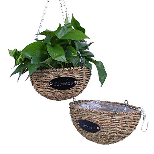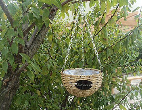 - Material: Handmade straw hanging basket. Hanging Plant basket with metal. iron frame, strong and durable.