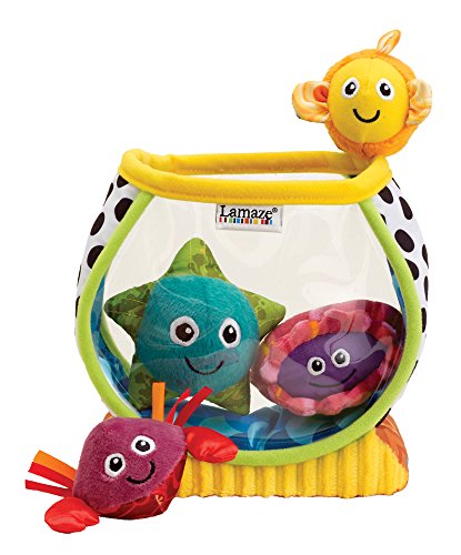 Send your baby on an under-the-sea adventure of colors and patterns with the Lamaze My First Fish Bowl. A creative version of the put-in, take-out concept, this fun fish bowl includes four sea creatures that each make a different sound - crinkle, rattle, jingle, or squeak! These easy-to-grasp creatures help develop hand-eye coordination and are full of textures for baby to explore.