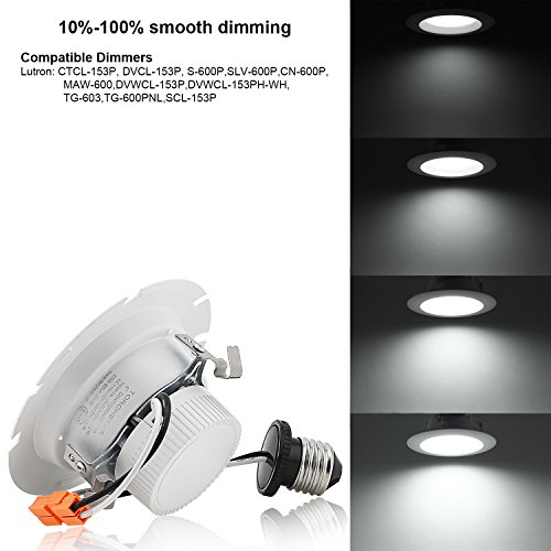 Easy Installation, standard E26 screw-in base adapter, convient quick-connector, fit seamlessly with standard 4” recessed can. Come with five years warranty