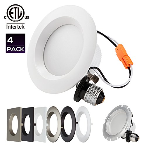 4-PACK 4 Inch Dimmable Recessed LED Downlight, 10W (75W Equiv.), White Trim Attached, Trim Interchangeable, For All Furnishing Styles, 5000K Daylight, ETL-listed, 5 YEAR WARRANTY