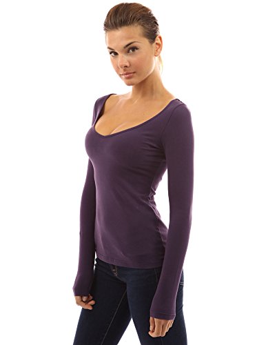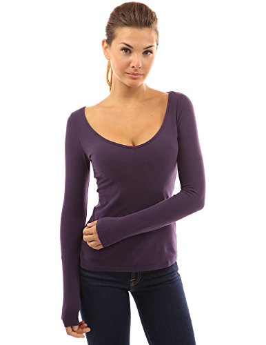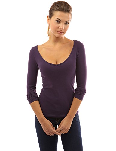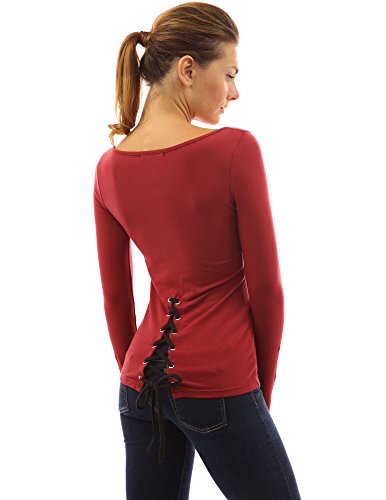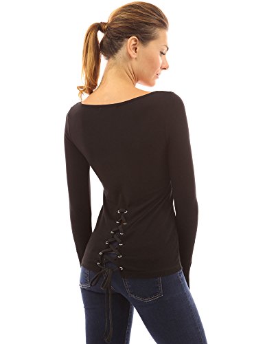 PattyBoutik Cotton Blend V Neck Lace Up Corset Back Long Sleeve Blouse Top. Model in pictures is 5 feet 8 inches (173cm) tall.
