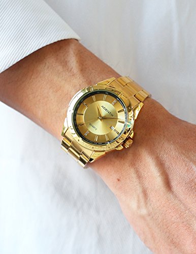 [에이전트 X]Agent X 손목시계 날짜 표시 골든 스테인레스 밴드 AGX026 맨즈