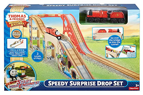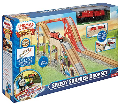 -. Binding : Toy -. Brand : Fisher-P.R.Ice -. EAN : 0887961183153 -. Feature : Includes James engine and tender / James heads to the top of the set (three level of elevations - the highest Wooden Railway track set yet!) / Lift the barrier to send James through the hidden tunnel in the mountain and out the bottom / Turn the red dial to easily reset the bridge drop feature / Lower the barrier to send James over the mountain -. IsAdultProduct : 0 -. Label : Fisher-P.R.Ice HK -. Manufacturer : Fisher-P.R.Ice HK -. Model : DFW96 -. MPN : DFW96 -. PackageQuantity : 1 -. PartNumber : DFW96 -. ProductGroup : Toy -. ProductTypeName : TOYS_AND_GAMES -. Publisher : Fisher-P.R.Ice HK -. Studio : Fisher-P.R.Ice HK -. Title : Fisher-P.R.Ice Thomas the Train Wooden Railway Speedy SurP.R.Ise Drop Set -. UPC : 887961183153 -. Warranty : Will Advise