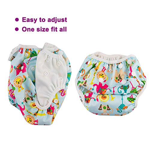 One size fits all: Adjusting the front corresponding snaps to adjust both waist size and height. 2 rows of snaps at the front, allowing you to adjust the height of the diaper and fit around the legs.