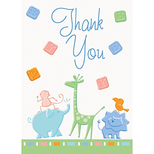 Zoo Animals Baby Shower 8 Count Thank You Notes, Green and White
