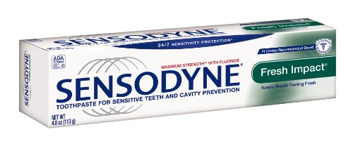 Sensodyne Fresh Impact toothpaste is a refreshing combination of paste and gel that keeps your breath feeling fresh for hours. Like other Sensodyne toothpaste products, when used every day, it relieves sensitive teeth by building a protective barrier that blocks the pain caused by hot, cold, sweet and other triggers and it keeps it from coming back. Sensodyne Fresh Impact toothpaste also has a great tasting mint flavor.