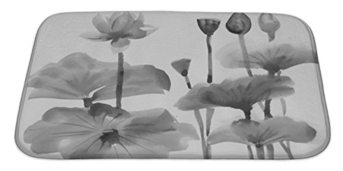 Gear New No Slip Microfiber Memory Foam Watercolor Painting of Lotus Flower Bath Rug Mat, 34" X 21"