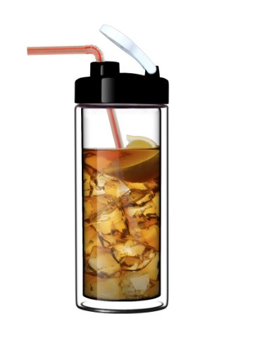 Sun's Tea (TM) 18oz Ultra Clear Double-Wall Glass Travel Mug with Flip-on Drinkhole Lid (made of real borosilicate glass)