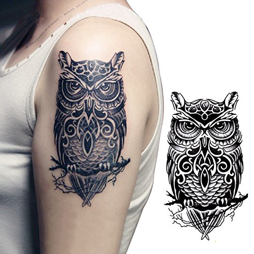 Yeeech Temporary Tattoos Owl Sticker Sexy Large Arm Black Long Lasting Waterproof Body Art Sheet Men Women