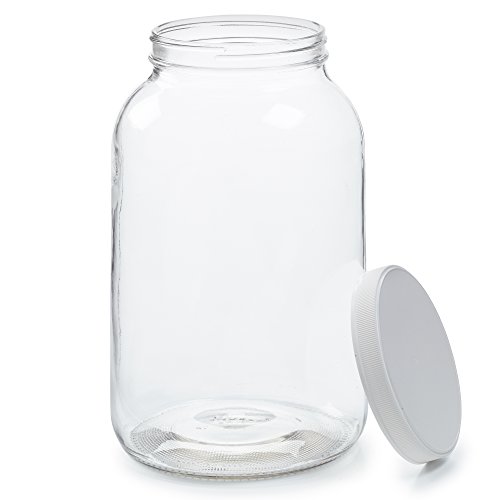 Empty 1 Gallon Glass Jar w/ Airtight Leakproof Plastic Lid - Wide Mouth Easy to Clean - BPA Free & Dishwasher Safe - USDA Certified - Kombucha Tea, Kefir, Canning, Sun Tea, Fermentation, Food Storage