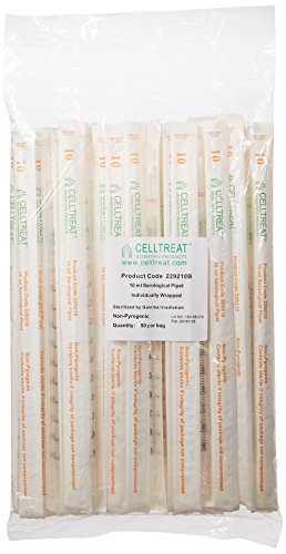 Celltreat 229210B Serological Pipet, 10mL Capacity, Sterile, Individually Wrapped/Bag (Case of 200)