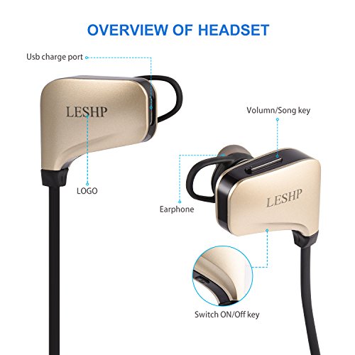 Bluetooth Headphones, LESHP Wireless Bluetooth Headset Earphones Earbuds, In-ear Stereo Bluetooth Sports Headphones for iPhone, Android, Other Bluetooth Enabled Devices (Black)
