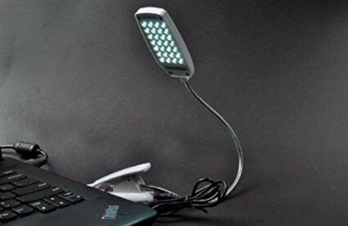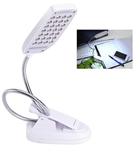 Clip LED Lamps USB 28 LEDs 5W Light Eye-Care Clip Book Reading Desk Table Light Battery for Pc Laptop Reading Lamp (White)