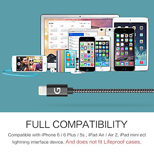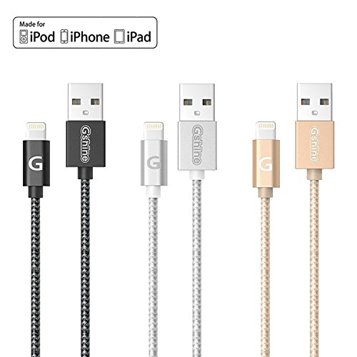 [Apple MFi Certified] Gshine® 3ft(0.9m) Durable Nylon Braided Lightning to USB Cable for iPhone 6 / 6 Plus, Beats Pill+ and More (Black)