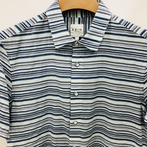 EZIO HOMME 18S/S 스트라이프 셔츠하늘하늘한 원단감으로 여름에 캐주얼바지,반바지등 시원한 느낌으로 스타일을 연출할 수 있는 멋스러운 패턴의 셔츠입니다