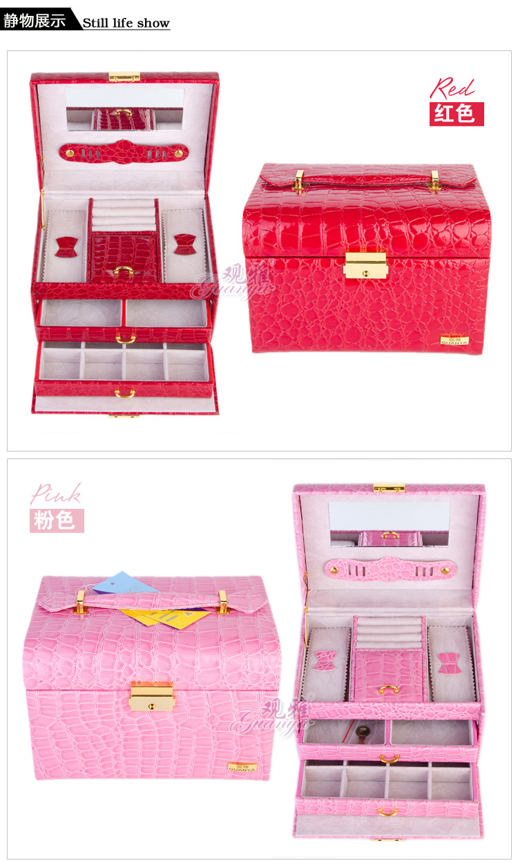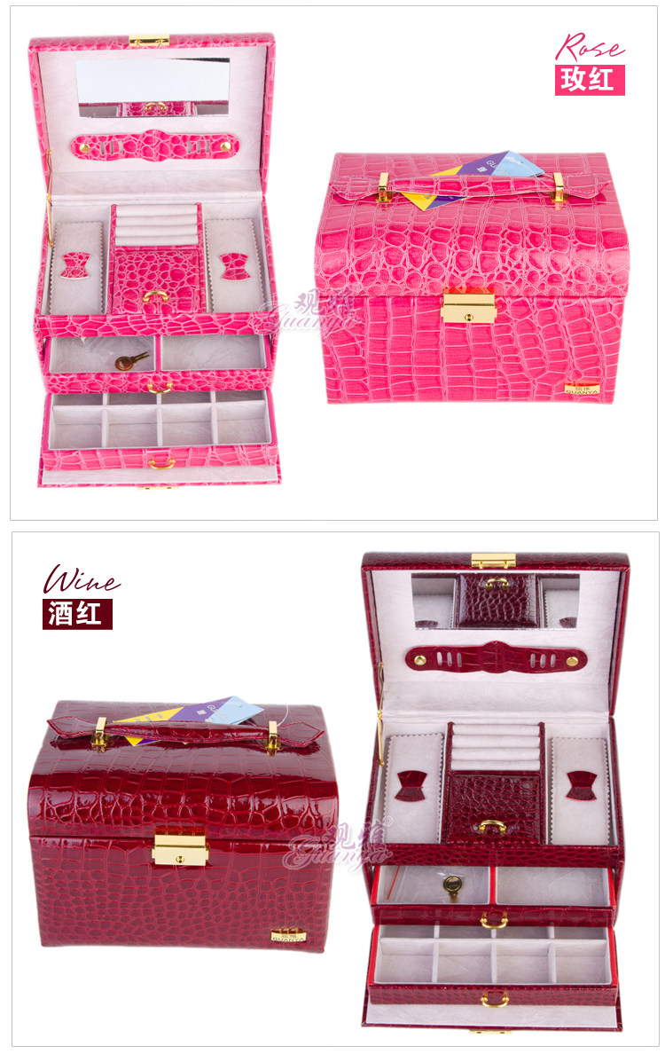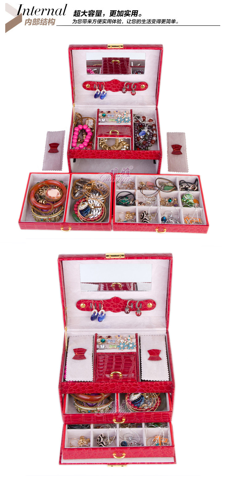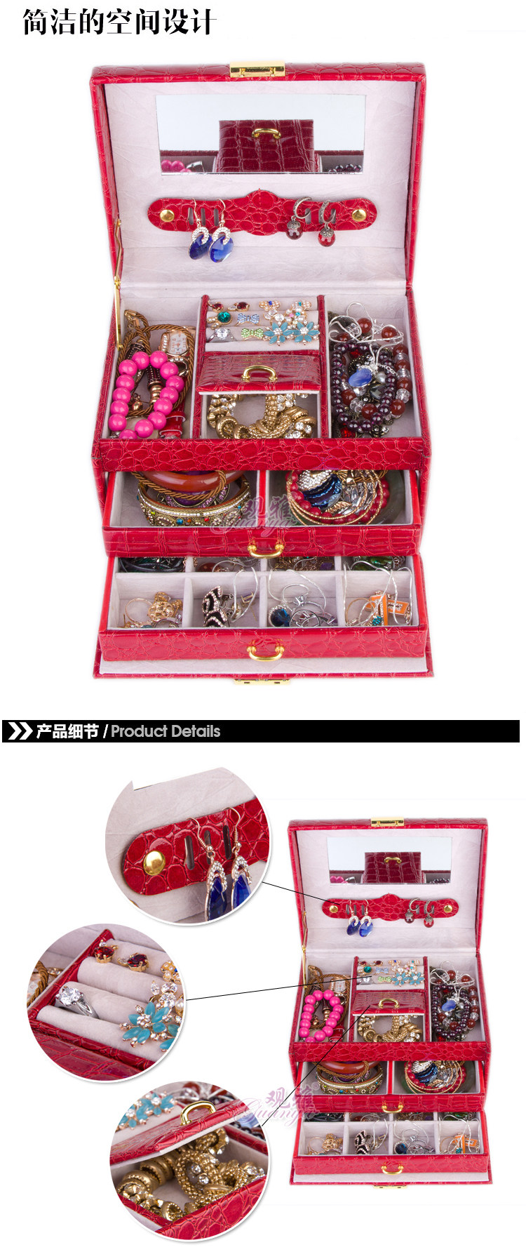 首饰盒 纹痕圆角首饰盒超大容量 项链戒指耳钉盒