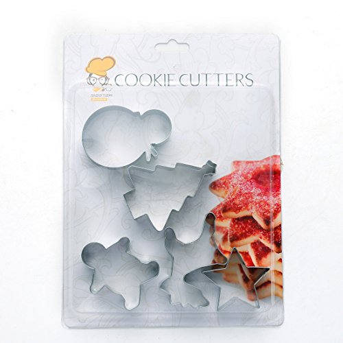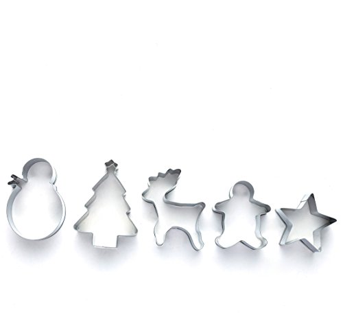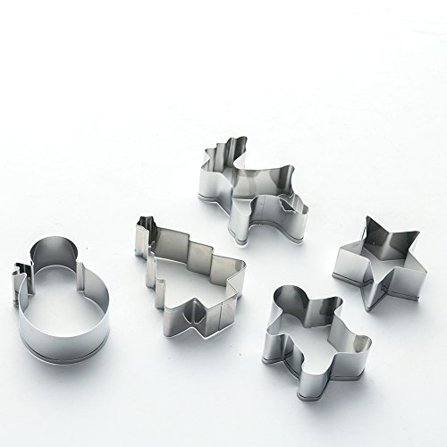 Pastry cutters cookie Cutter Mould Stainless Steel ( Star Tree Snowman Beer Man Shapes ) Set of 5 by KAISHAN